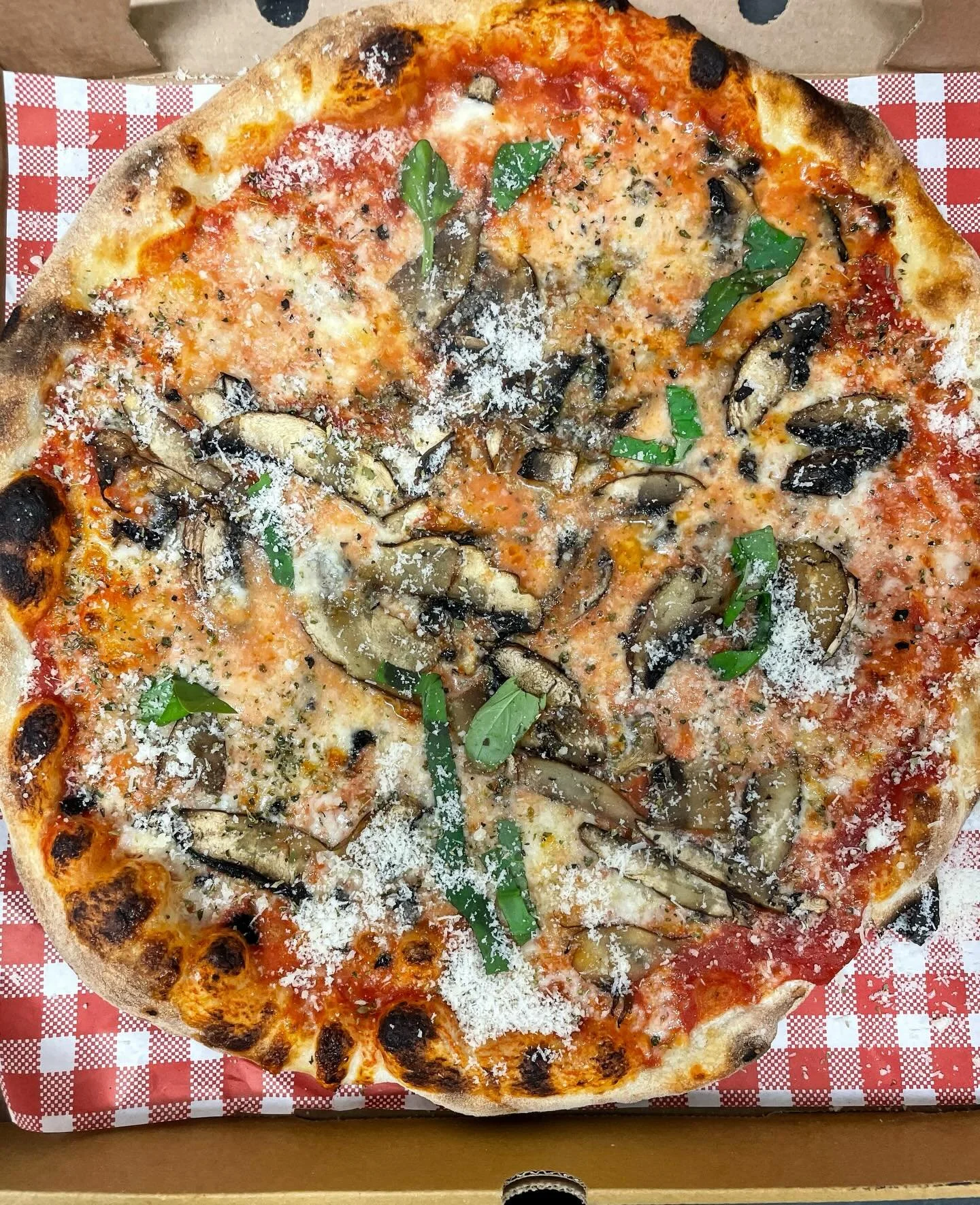 Aged mozzarella, portobello mushrooms, gorgonzola, pecorino, garlic oil, parsley